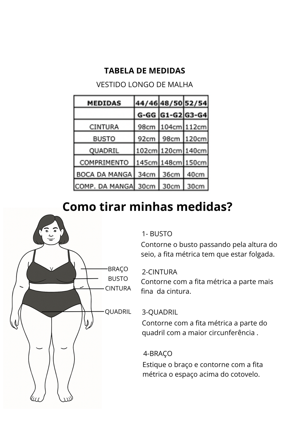 - Consulte o guia de medidas abaixo para escolher o tamanho ideal.