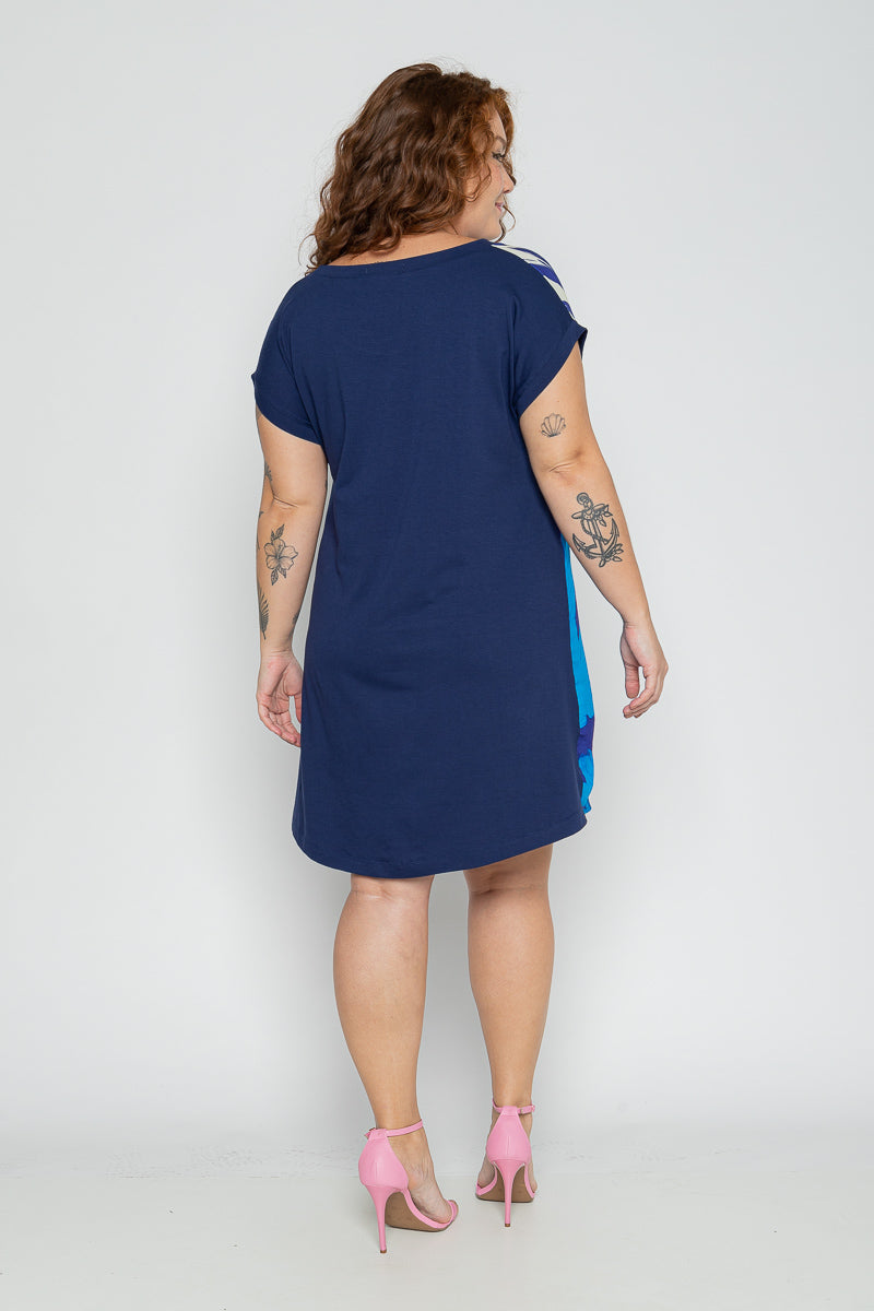 Destaque-se com leveza usando o vestido curto plus size floral em tons de azul, uma peça fresca, vibrante e cheia de charme. Com modelagem reta e caimento soltinho, ele veste mulheres do 44 ao 54 com muito conforto. A estampa de flores em azul profundo sobre fundo claro cria um contraste elegante, perfeito para dias de calor, eventos descontraídos ou produções com toque tropical. Um vestido feminino plus size que une praticidade, estilo e alegria em uma só peça.