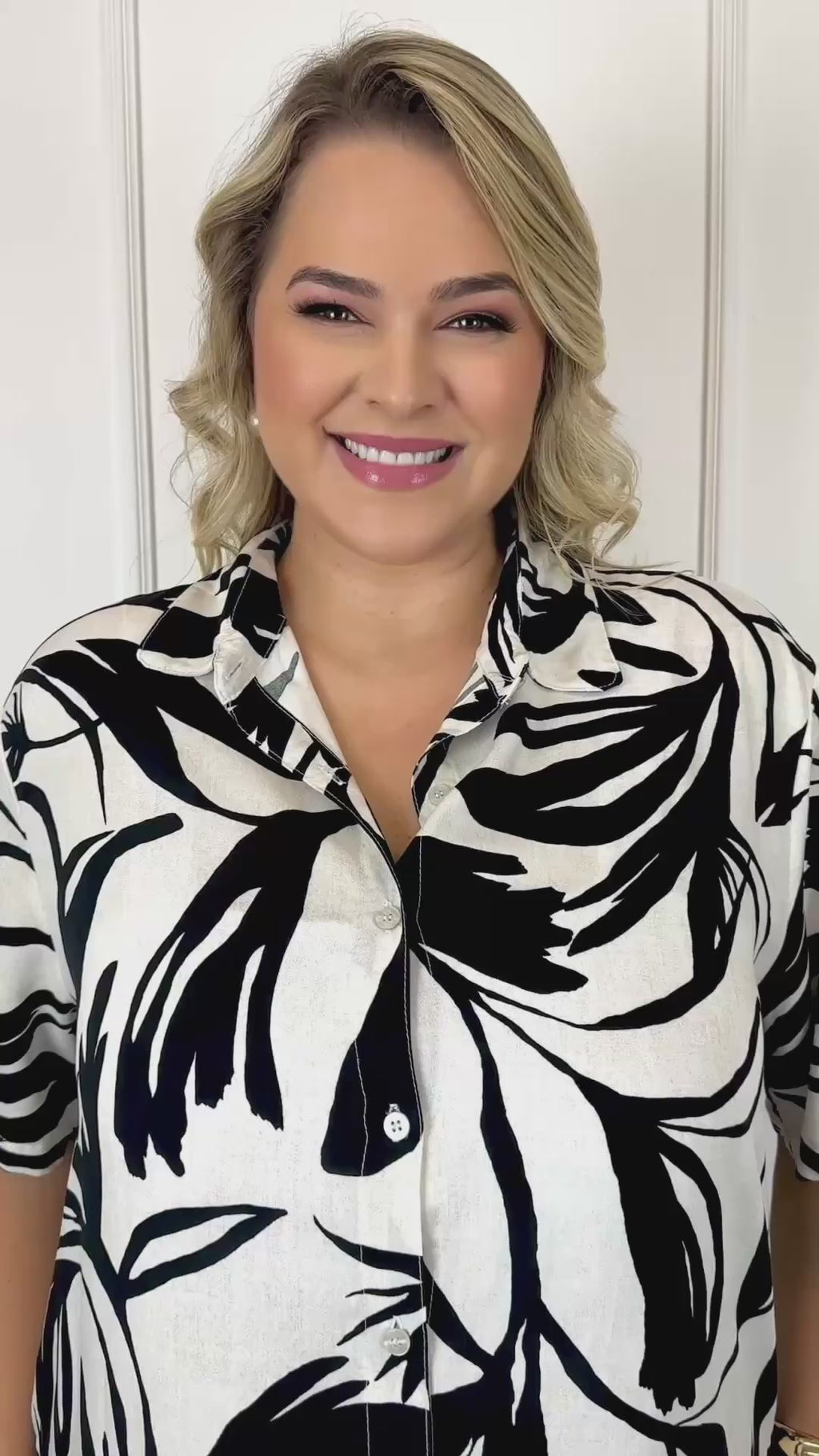 Estilosa e atemporal, a camisa plus size off-white com estampa preta é a escolha ideal para quem busca versatilidade com um toque de elegância. Sua modelagem ampla veste com conforto mulheres do 44 ao 54, proporcionando um visual leve, moderno e cheio de personalidade. A estampa orgânica em contraste preto garante destaque na medida certa, funcionando tanto para composições casuais quanto para produções mais arrumadas. Uma peça coringa para usar com jeans, alfaiataria ou como terceira peça.