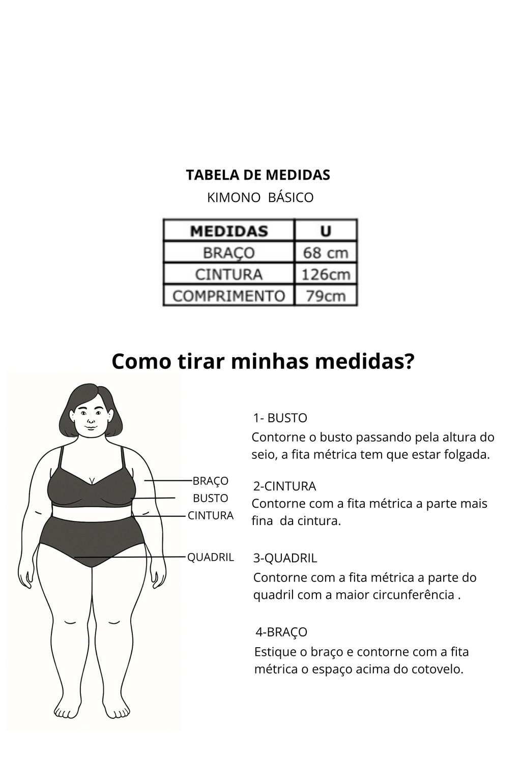A modelagem ampla com mangas 3/4 e o caimento fluido valorizam o corpo e garantem conforto para vestir do 44 ao 54. O tamanho único oferece ajuste perfeito e liberdade de movimento. Confeccionado em 100% viscose, o kimono é leve e respirável — ideal para composições de meia-estação e para os dias mais quentes.