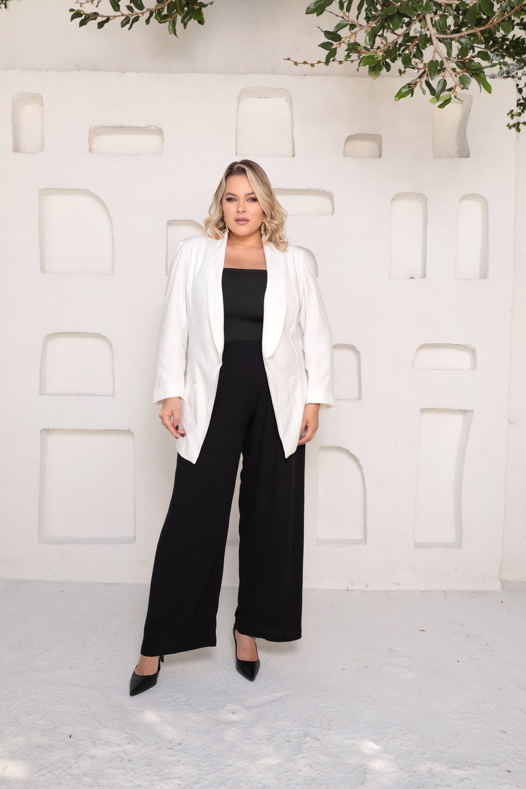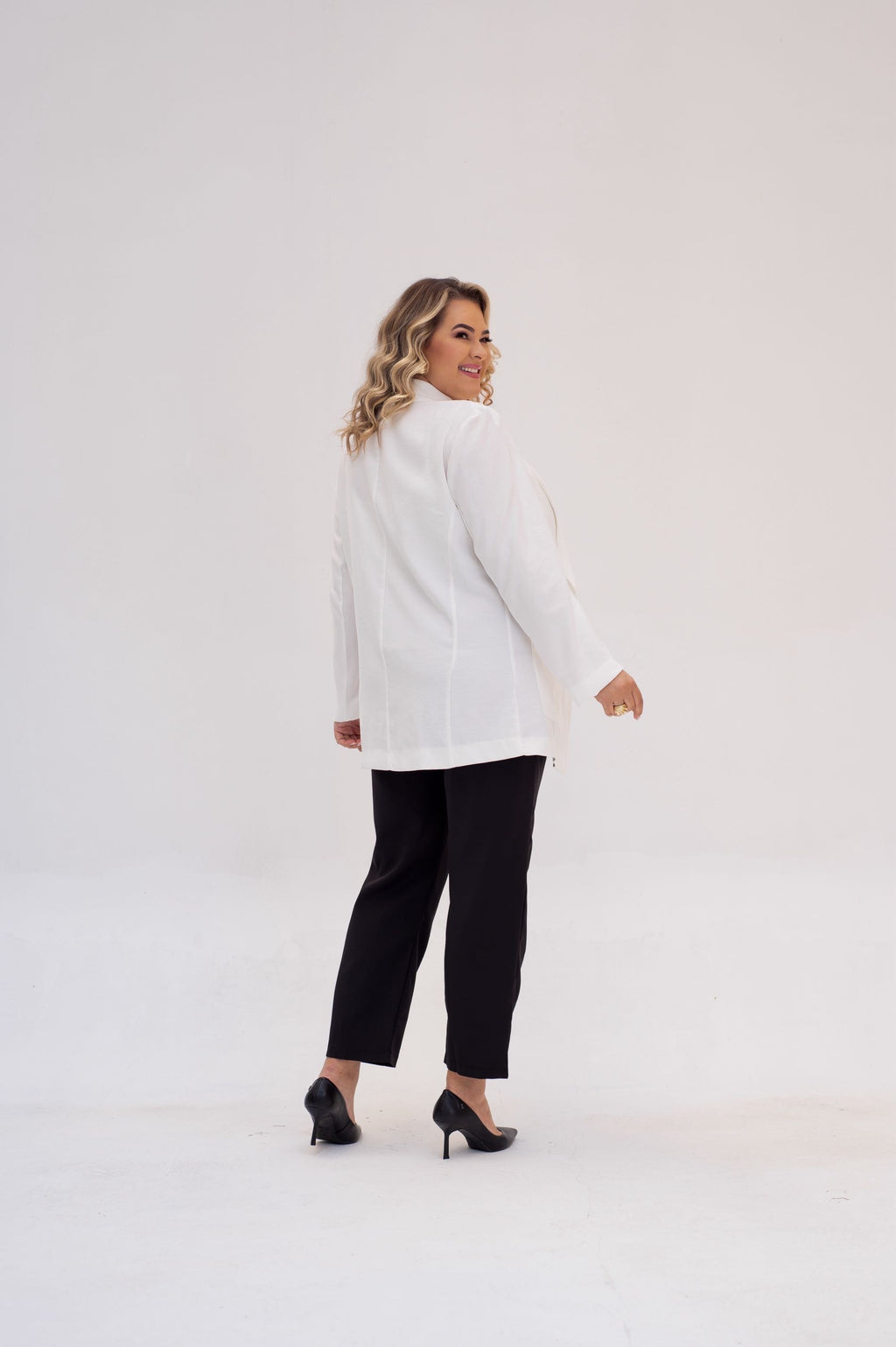 Elegância clean e caimento perfeito: o Blazer Off White Plus Size em Viscose com poliéster estruturada é a peça ideal para mulheres que buscam um visual sofisticado, leve e versátil. Sua modelagem reta e mais longa proporciona um caimento impecável, valorizando as curvas com muito conforto. A costura embutida de alfaiataria garante acabamento refinado, e a ausência de forro torna o blazer ainda mais leve — perfeito para compor looks em qualquer estação.